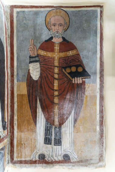Non è da escludere che sull’originaria parete sinistra fosse rappresentato un altro santo.